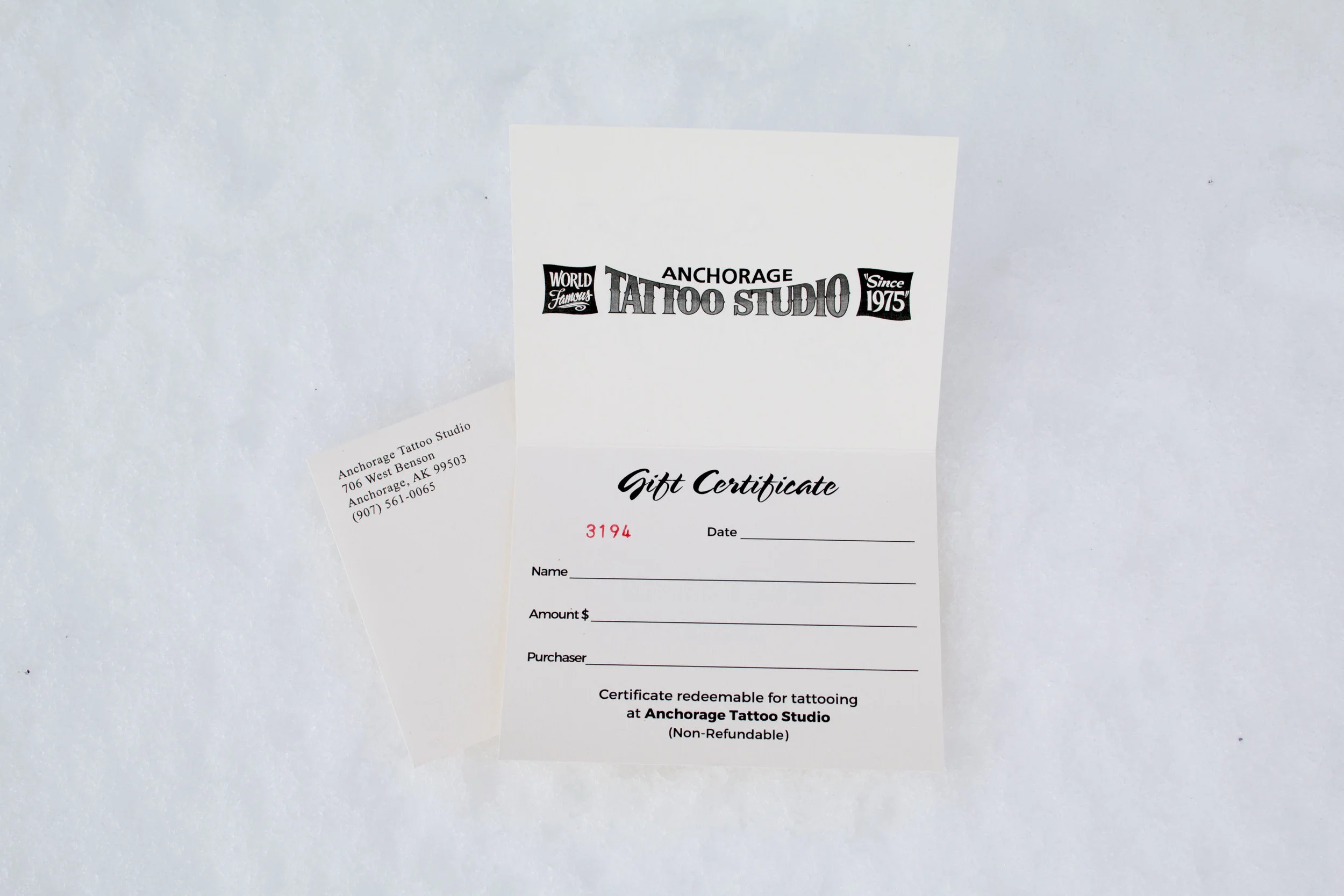 Anchorage Tattoo Studio Gift Certificates